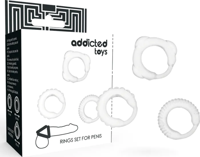 Optimiza tu placer con el set de 3 anneaus ADDICTED TOYS. Diseñados para mantener la firmeza y prolongar el placer. Perfecto para quienes desean explorar nuevas experiencias.