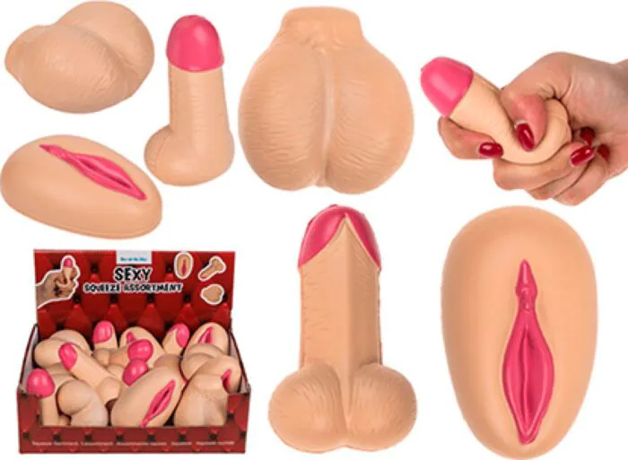 Voici le SQUEEZE SURTIDO d'Out Of The Blue: un coffret de petites pièces antistress à presser, présenté en assortiment de formes génitales. Il s’adresse à toute personne qui veut un objet amusant pour relâcher la tension, faire un cadeau rigolo ou animer un enterrement de vie de célibataire. Ce qui le distingue, c’est l’ensemble: 12 pièces pratiques, détails réalistes et une finition vanille ponctuée de rose — le tout en format réduit, facile à manipuler et à offrir.
