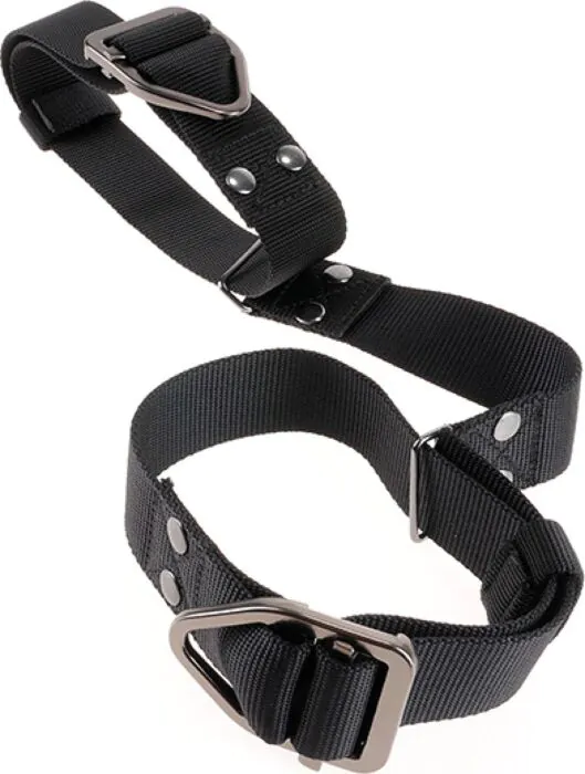 Attache conçue pour maintenir fermement chaque biceps avec sangles en nylon industriel et boucles en acier inoxydable. L'anneau en V réduit le glissement pour un meilleur contrôle pendant les jeux de contrainte. Pour pratiquants BDSM qui veulent robustesse et réglage précis ; pas recommandé si tu débutes et préfères attaches souples.
