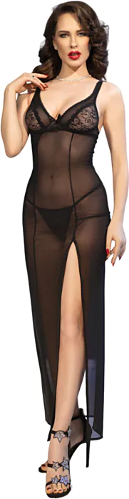 Ce babydoll long révèle un charme délicat grâce à sa dentelle semi-transparente qui épouse gracieusement vos courbes. Conçu à partir d'un mélange de 90 % de polyester et de 10 % d'élasthanne, il offre une douceur incomparable ainsi qu'une élasticité agréable à porter. Le dos se ferme avec un laçage, permettant un ajustement personnalisé tout en ajoutant une touche romantique.