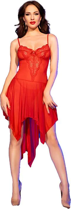Ce babydoll rouge en tulle transparent ajoute une touche de coquetterie à votre garde-robe. Avec son charme aérien et son dentelle romantique, il est parfait pour des soirées élégantes.