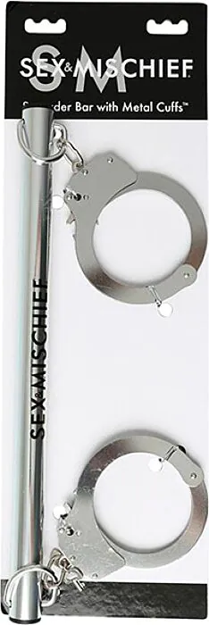 Barre d'écartement Sex & Mischief avec menottes métalliques