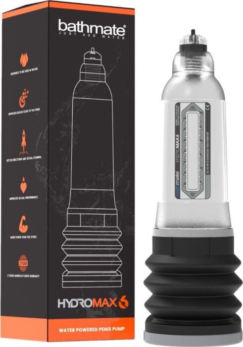 Hydromax6 de BATHMATE est une pompe pénienne à eau pensée pour hommes dont la verge mesure 10–15 cm en érection. Sa conception avec soufflet augmente l'efficacité de l'aspiration (+35%) et l'insert souple limite la pression à la base et sur les testicules. Convient à une routine sous la douche ou dans le bain, pour qui veut un contrôle précis et progressif.