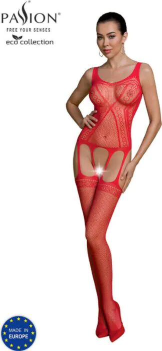 Transforme ta silhouette avec ce bodystocking rouge, conçu en matériaux recyclés. Recommandé pour celles qui souhaitent allier sensualité et conscience écologique.