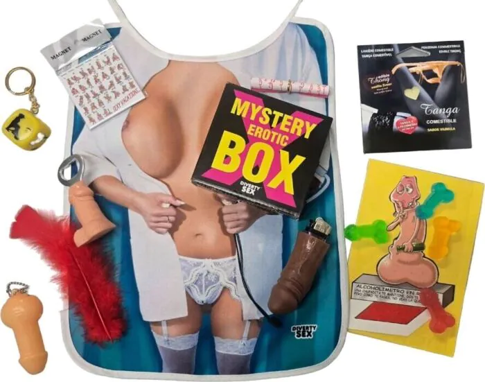 Un moment de surprise et de rires garanti avec cette Boîte Érotique Mystère. Son contenu aléatoire, combinant humour et érotisme léger, promet de faire sourire et d’apporter une touche de complicité lors de vos soirées. Chaque boîte contient toujours une carte de blague, une sticker érotique et une surprise piquante, ce qui la rend recommandée pour une célébration ou un cadeau inattendu.
