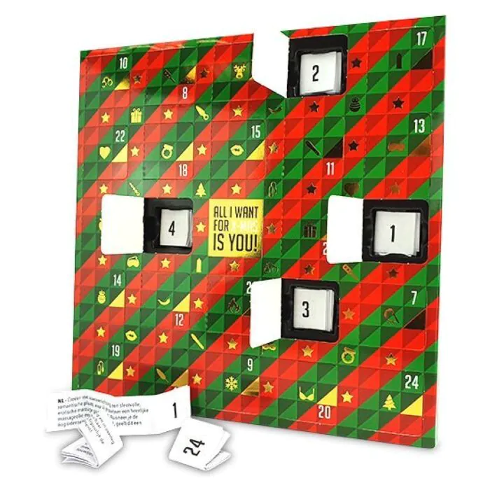 Préparez-vous pour un Noël inoubliable avec le Calendrier de l'Avent Érotique ! Ce produit exclusif vous offre l'opportunité de surprendre votre partenaire avec 24 défis érotiques conçus pour raviver la flamme de la passion et du plaisir en cette saison festive.