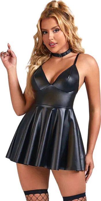 Éveillez vos sens avec cette robe sexy en cuir PU, conçue pour sublimer votre silhouette. Son mélange de 95% polyester et 5% élasthanne assure un ajustement confortable et flexible, tandis que les tirants ajustables vous permettent de personnaliser le maintien selon vos envies.
