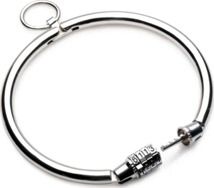 La soumission prend une nouvelle dimension avec ce collier en métal, offrant un poids agréable qui procure une sensation de contrôle total. Conçu en métal inoxydable, il allie robustesse et facilité d'entretien. La fermeture par combinaison numérique assure une sécurité sans faille, permettant à votre partenaire de se sentir totalement à sa place.