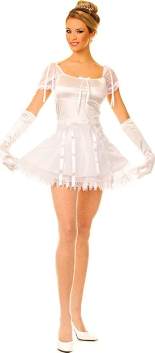 Robe de ballerine en satin brillant signée Music Legs, pour celles qui veulent un déguisement élégant et féminin. La coupe joue sur le contraste satin/tulle avec rubans et finitions en dentelle. Livré avec gants en satin, taille S/M — parfait pour soirées à thème, séances photo ou enterrements de vie de jeune fille quand tu veux une allure raffinée sans complexité.