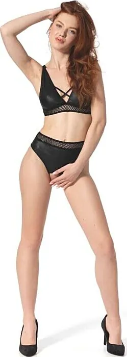 Avec cet ensemble KRISTEEN, prépare-toi à faire tourner les têtes. Composé d'un tanga ouvert et d'un soutien-gorge, il illumine les courbes et apporte une touche de mystère à ta silhouette. Fabriqué à partir de 60 % de polyuréthane et 40 % de polyester, il offre une finition brillante et une texture douce qui épousera ton corps avec délicatesse.