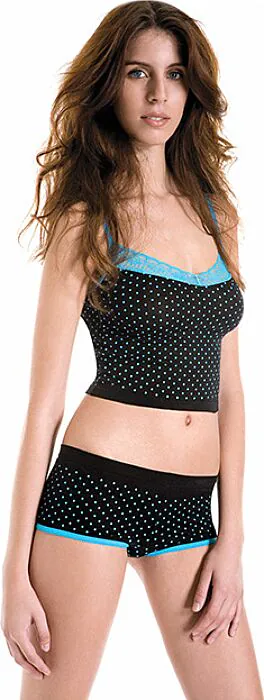 Affichez votre style avec cet ensemble top et short qui allie confort et sensualité. Le top, orné de détails en dentelle au niveau du décolleté, mettra en valeur votre silhouette, tandis que le short à pois apporte une touche ludique. Indiqué pour des occasions spéciales ou pour une soirée à la maison, cet ensemble attire les regards tout en vous offrant une sensation de légèreté.