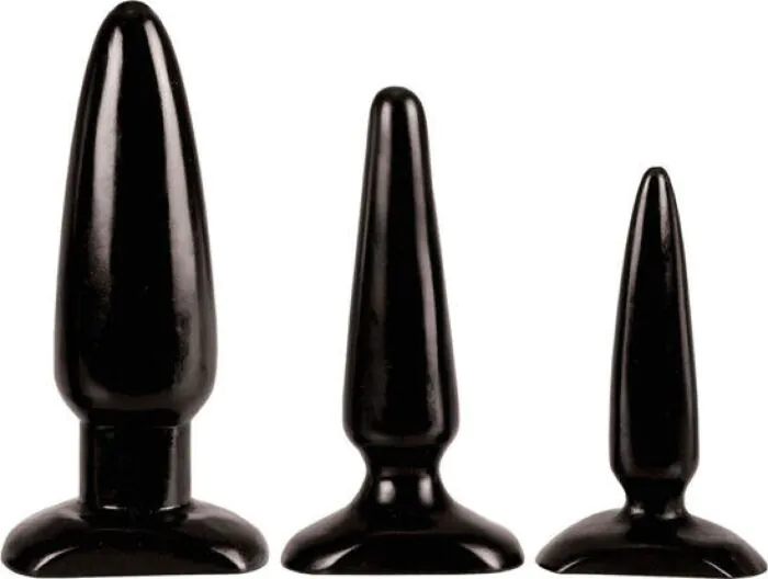 Un voyage vers le plaisir anal commence ici, avec des plugs en vinyle très doux qui s'adaptent à votre rythme. Ce kit comprend trois tailles, vous permettant de commencer petit et d'augmenter progressivement selon votre confort.