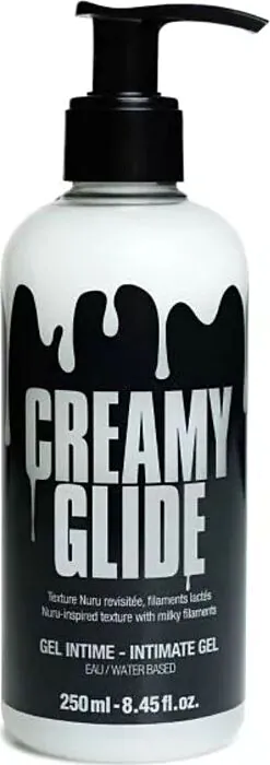 Tu cherches un gel qui reproduise visuellement l'aspect du sperme tout en restant utilisable comme lubrifiant? CREAMY GLIDE est un gel intime à base d'eau au rendu blanchâtre qui reprend l'aspect laiteux du sperme pour les jeux réalistes, les séances photo/vidéo et pour alimenter les consolateurs eyaculateurs. Sa texture fluide et ultra‑glissante crée des fils soyeux entre les corps, rappelant la sensation des gels Nuru mais avec un look « fake cum ».