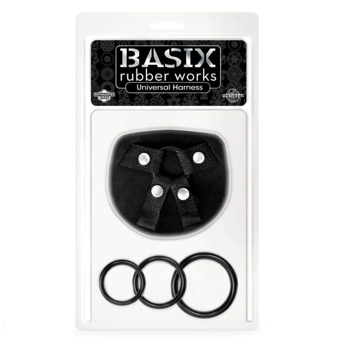 Le harnais universel BASIX est conçu pour s'adapter à vos dildos préférés grâce à ses 3 anneaux de silicone. Un accessoire essentiel pour varier les plaisirs.