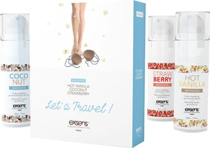 Ce kit de voyage d'huiles de massage comestibles apporte des saveurs délicieuses pour des moments sensuels à deux. Recommandé pour ceux qui souhaitent éveiller leurs sens.