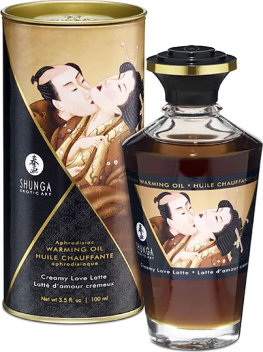 Huile de massage gourmande SHUNGA, parfum « Creamy Love Latte » avec effet chauffant pour amplifier les caresses. Idéale si tu cherches une huile sensuelle pour massages érotiques et jeux buccaux occasionnels. Texture huileuse, tactile et généreuse : parfaite pour prolonger les gestes, augmenter la sensibilité et créer une ambiance chaude et gourmande.