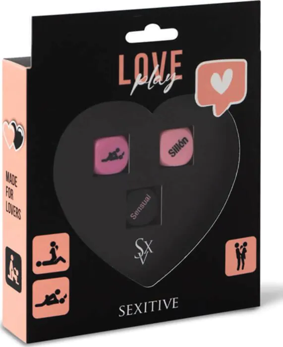 Love Play de SEXITIVE est un pack ludique de 3 dés pensé pour les couples qui veulent varier leurs jeux intimes. Chaque dé propose 6 options — intensité, positions et lieux — pour créer des scénarios simples et amusants. Parfait pour les débutants et pour ceux qui cherchent un jeu convivial à partager, moins adapté si tu veux du matériel électronique ou des règles très codifiées.