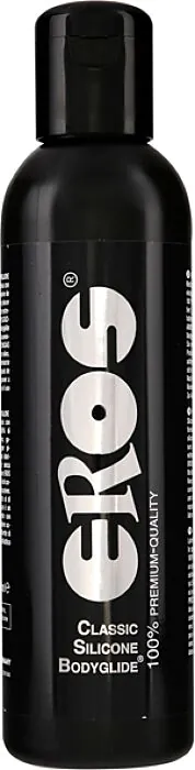 Le Classic Silicone Bodyglide d'EROS est un lubrifiant 100% silicone en format 500 ml — conçu pour offrir une glisse très durable et une sensation soyeuse sur la peau. En boutique je te dirais: si tu veux un produit qui tient longtemps sans sécher et sans devenir collant, c'est celui-ci. Sa formulation apporte une grande tolérance cutanée, un toucher délicat et un rendement élevé: quelques gouttes suffisent pour une séance.