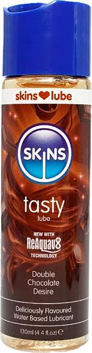 Le SKINS Double Chocolate est un lubrifiant à base d'eau aromatisé, pensé pour accompagner les jeux oraux et l'utilisation de jouets intimes sans altérer les matériaux. Sa formule vegan est douce, non tachante et offre une texture soyeuse qui tient bien sur la peau. Ce qui le distingue en boutique, c'est la technologie Skins Reaquav8: si la sensation s'amenuise, un léger coup de langue ou un vaporisateur d'eau redonne de la glisse.