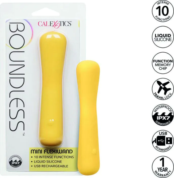 Le Boundless Mini FlexiWand de CALEXOTICS offre une stimulation intense grâce à sa forme flexible et ses 10 modes de vibration. Parfait pour ceux qui recherchent un plaisir varié et personnalisé.