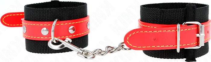 Menottes KINK en nylon noir avec cuir rouge ajustable