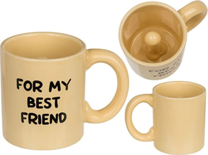 Caractéristiques visibles : phrase décorative « For my best friend », couleur vanille et finition brillante, pensée comme un cadeau drôle et original pour surprendre un proche.