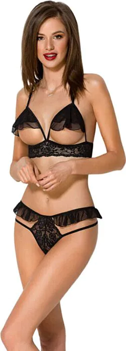 Cet ensemble de lingerie est un very good choix pour celles qui recherchent une pièce sexy et élégante. La combinaison de tulle et de dentelle apporte une touche raffinée. À noter : le soutien-gorge à bonnets ouverts peut ne pas convenir à toutes les morphologies.