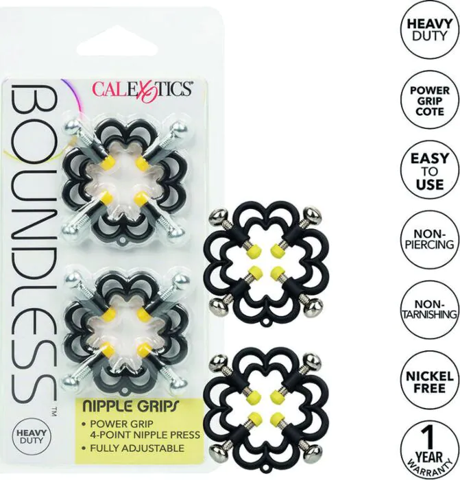 Sensation intense à chaque pression avec les pinces à tétons Boundless en métal de haute résistance. Conçues avec une presse atornillable de 4 points, elles permettent un ajustement personnalisé pour un plaisir optimal.