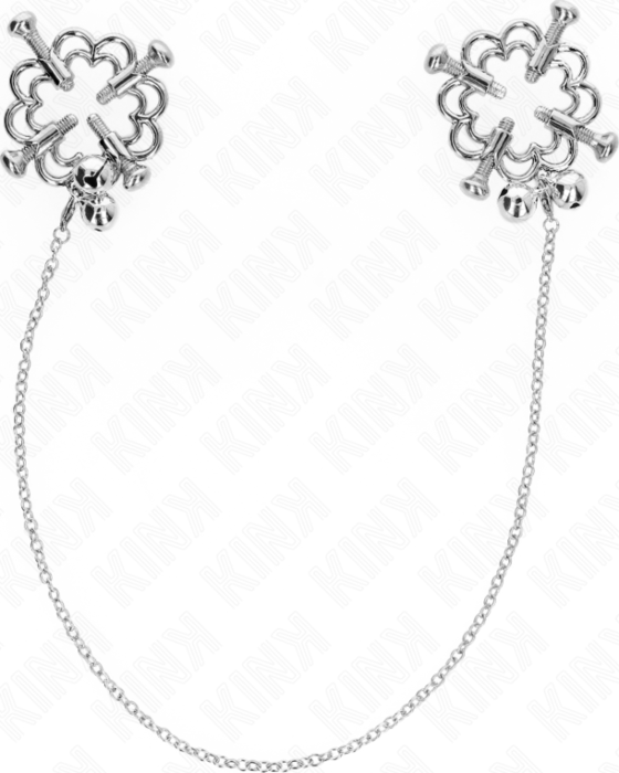 Une stimulation accentuée et une sensualité à couper le souffle sont au rendez-vous avec les pinzas pour tétons KINK en métal. Leur design élégant, associé à une chaîne, apporte non seulement un plaisir physique, mais également une dimension visuelle captivante. Fabriquées en silicone, elles garantissent confort et sécurité pour une utilisation prolongée.