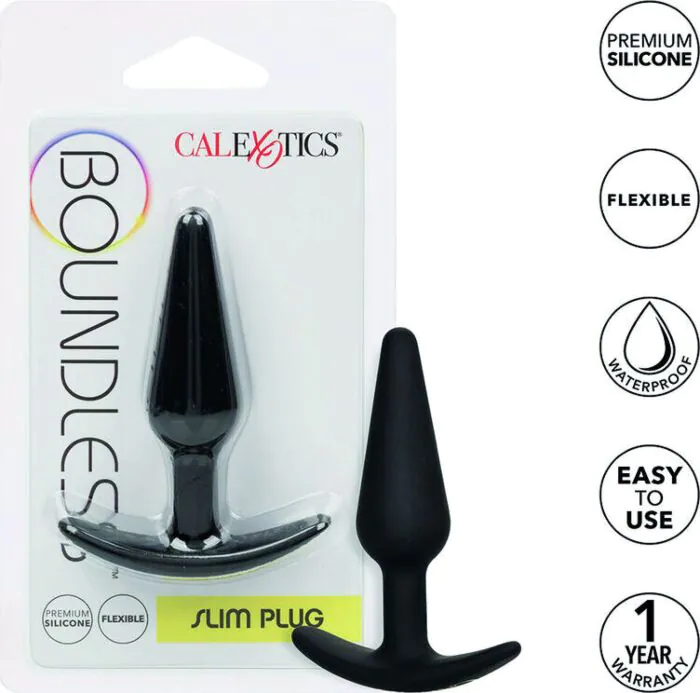 Le Boundless Slim Plug de CALEXOTICS offre une expérience de plaisir sans fin avec son design effilé et sa base de traction facile. Parfait pour les débutants et les experts.