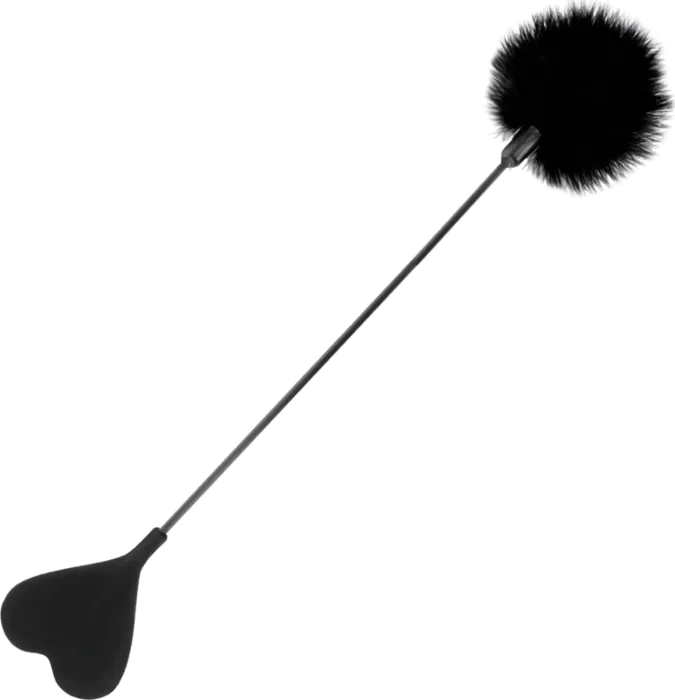 Dynamise vos jeux érotiques avec la fusta Darkness de 40 cm. Une face en plume douce pour titiller les sens, l'autre pour des sensations plus intenses.