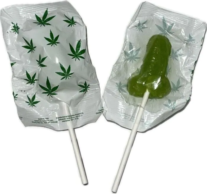 Tu veux quelque chose de drôle et comestible pour une soirée entre adultes ? Cette sucette coquine en caramel de la marque DIVERTY SEX (plus de 20 ans dans les cadeaux érotiques) reprend la forme d'un pénis, arbore une couleur vert clair et diffuse un parfum évoquant le cannabis. Concrètement, c'est un bonbon : léger (environ 13 g) et compact (environ 5 cm pour la partie bonbon, bâton inclus), pensé pour surprendre et apporter un clin d'oeil. Ce n'est pas un jouet intime réutilisable, mais une friandise pour adultes.