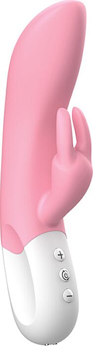 Je te présente le Mighty Rabbit de Liebe comme si tu venais en boutique : un vibromasseur double, tactile et pensé pour viser le point G tout en massant le clitoris grâce à son stimulateur en forme de conejito. À l'usage on sent tout de suite la différence d'un axe incurvé et souple : tu peux orienter la stimulation sans forcer, et les deux moteurs fournissent une puissance qui tient bien la route sur les modes les plus intenses.