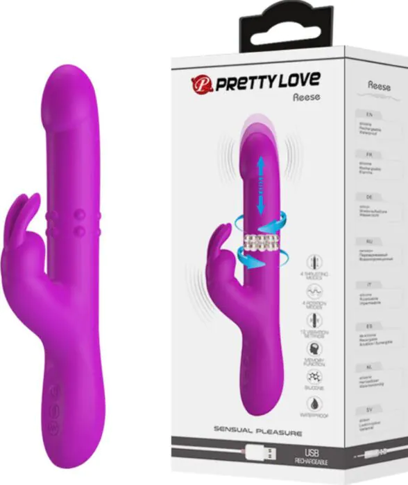 Découvrez le vibrateur Rabbit Reese de Pretty Love, conçu pour stimuler simultanément le clitoris et le point G. Avec 12 modes de vibrations et 4 fonctions de rotation, il offre une expérience sensorielle mémorable.
