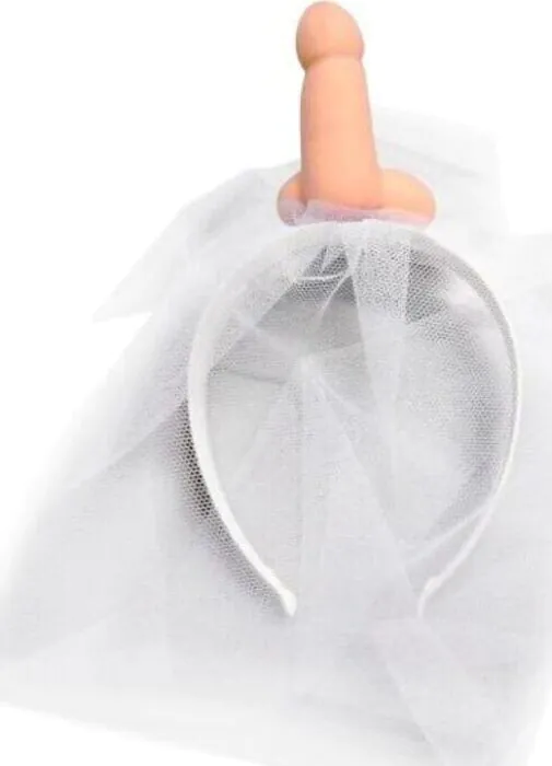 Voici le serre-tête « DIABLO PICANTE », un accessoire conçu pour l’enterrement de vie de jeune fille: un voile blanc fixé sur un serre-tête avec un ornement en forme de pénis. En boutique je te le présenterais comme un jouet d’ambiance — il attire l’œil sur les photos et signale clairement la fête. C’est l’option qui privilégie l’humour et la mise en scène plutôt que le raffinement discret.